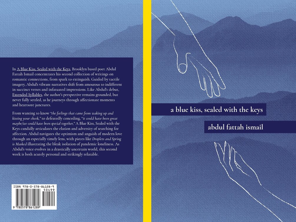 In A Blue Kiss, Sealed with the Keys, Brooklyn based poet Abdul Fattah Ismail concentrates his second collection of writings on romantic connections, from spark to extinguish. Guided by tactile imagery, Abdul's vibrant narratives shift from amourous to indifferent in succinct verses and infatuated impressions. Like Abdul's debut, Extended Syllables, the author's perspective remains grounded, but never fully settled, as he journeys through affectionate moments and heartsore junctures.